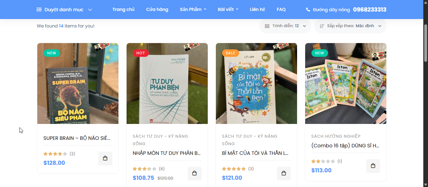 Hiển thị giá & ưu đãi minh bạch: giá bìa, giá bán, giảm giá, combo hoặc flash sale (tuỳ cấu hình dự án).