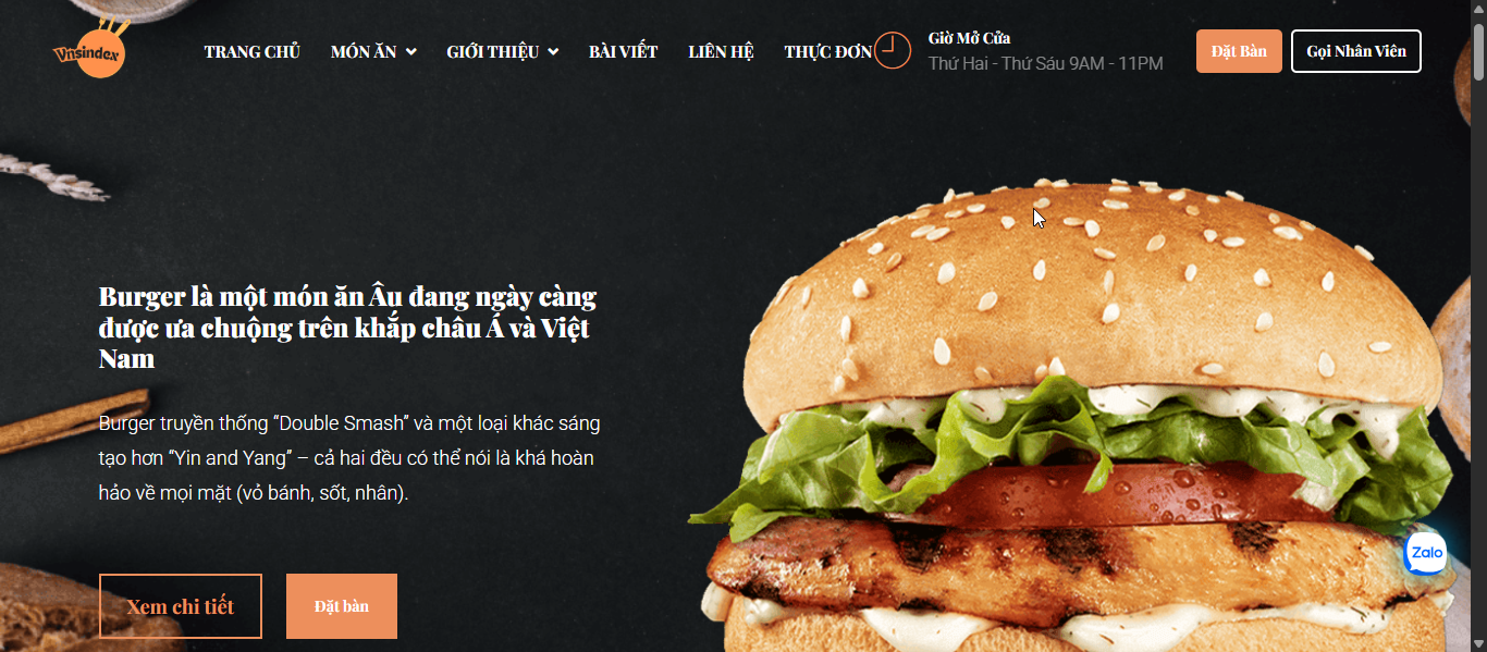 VNSIndex Burger là web bán hamburger và đồ ăn nhanh trực tuyến, giúp khách đặt món nhanh và nhận hàng tại nhà hoặc văn phòng.